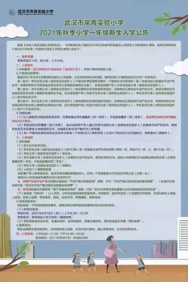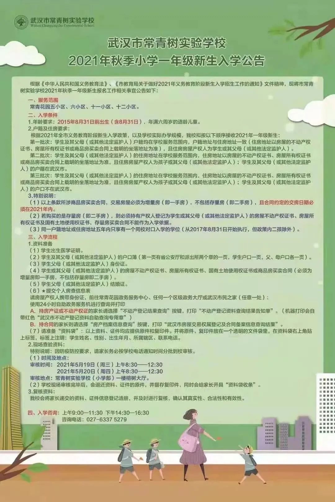 根据《中华人民共和国义务教育法》及《市教育局关于做好2021年义务教育阶段新生入学招生工作的通知》精神,现将常青第一学校2021年秋季一年级新生报名工作相关事宜公告如下: