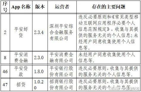 其中,平安银行运营的“平安贷款”App、招商银行运营的“招贷”App,存在违反必要原则,收集与其提供的服务无关的个人信息等问题。