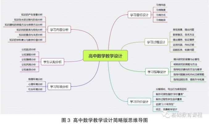 教学设计思维导图蕴含的教学理念有:学习即研究,教学即研究指导;教学设计应有一个基本的、可灵活使用的章法;应尽力提高教学设计的技术含量。使用该思维导图时,不能把它当作固定的、僵化的框架,而应以对话的形式将其转化为教学设计提示语。如,知识的产生背景与固着点是什么?其生长过程与生长阶段是怎样的?知识建构所用的数学思想方法与思维方法是什么?知识间的联系与结构如何?其要点与本质又是什么?知识具有怎样的教学价值?等等。为了增强操作性与针对性,还要把该模型的下一级框架也转化为教学设计提示语。
