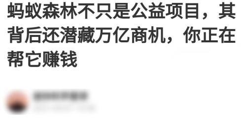 倒也没那么纯粹,毕竟蚂蚁森林这个上瘾的小游戏,对于支付宝的打开率、品牌形象等等方面还是有帮助的。
