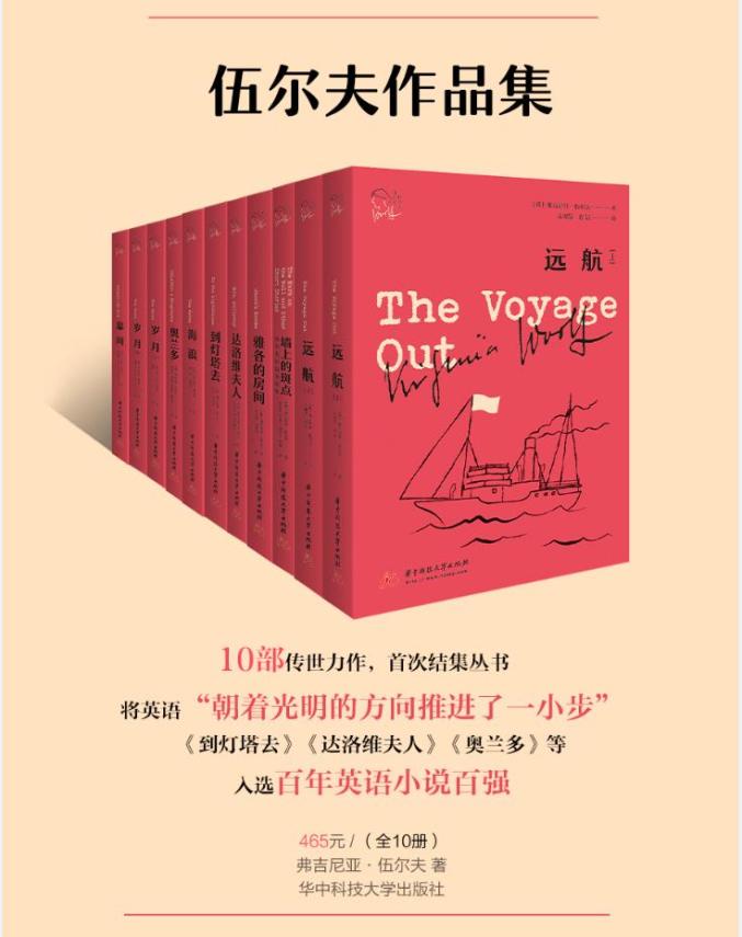 本套书共分十部,包含《奥兰多》、《幕间》、《远航(上下)》、《海浪》、《墙上的斑点:伍尔夫短篇小说集》、《到灯塔去》、《雅各的房间》、《岁月(上下)》、《夜与日(上下)》、《达洛维夫人》。由译言网与华中科技大学出版社联手打造,是国内完整意义上的伍尔夫作品集。其作者是意识流小说三巨头之一弗吉尼亚·伍尔夫,英国女作家、文学批评家和文学理论家,意识流小说奠基人,二十世纪现代主义与女性主义的先锋。伍尔夫的作品不输乔伊斯、普鲁斯特的手法而更添唯美诗意的情调。其多部小说入选百年来英语小说百强。爱德华·摩根·福斯特称伍尔夫将英语“朝着光明的方向推进了一小步”。她在文学上的成就和创新至今仍有深远影响。