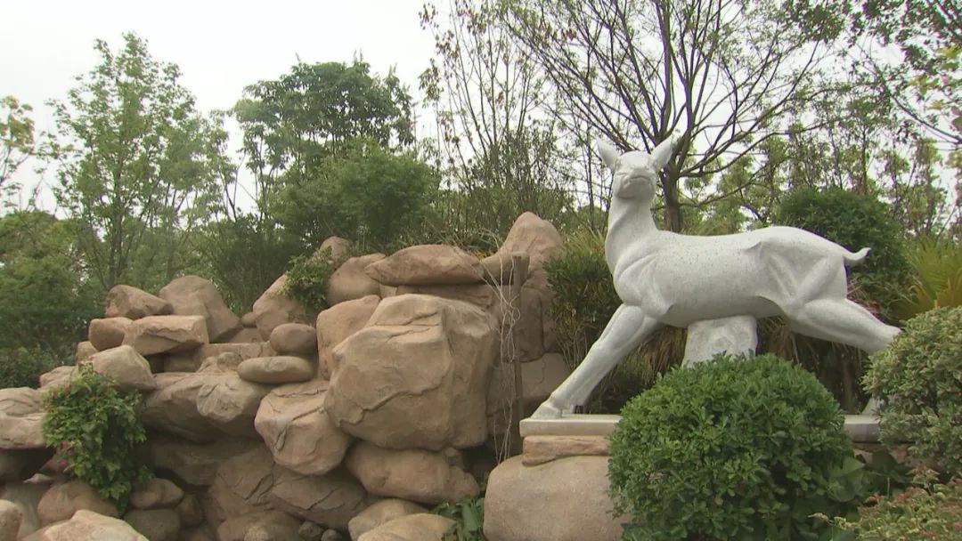 在海南园的一个角落里,有一头鹿。这和黎族的一个美丽爱情故事有关。相传有一位黎族的小伙子,在捕捉这头鹿的时候,把它逼到了悬崖边上,这时,鹿回眸一笑,变成了一位美丽动人的姑娘,于是他们两个人便相爱了,成就了一段美丽的佳话。这里还有两棵龙凤三角梅,与这个美丽的爱情传说遥相呼应。
