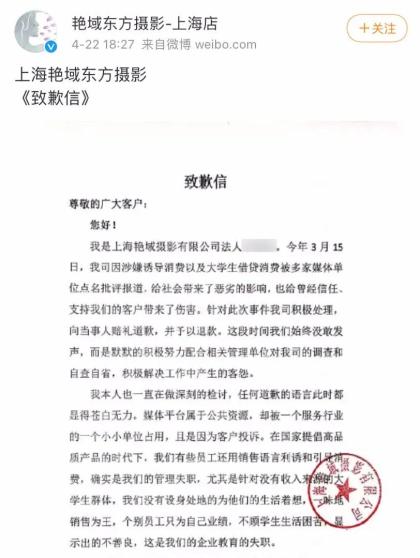 日前,已经取得阶段性成效,属地工商所和派出所已经联手调查,“艳域摄影”向社会公开致歉,并停止接收新的订单,专心整改。
