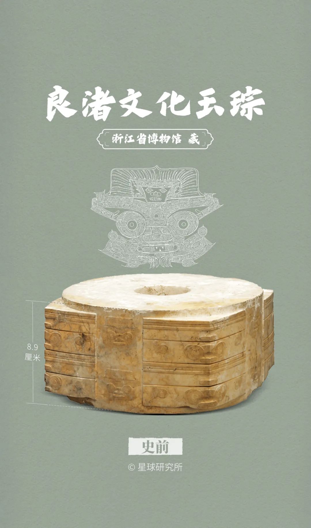 (玉琮,其上的神人兽面纹,被认为是当时的一神教的神的形象,琮在良渚文化中为礼器,这件玉琮因有完整的神徽图案,被称为“琮王”,摄影师@苏李欢)