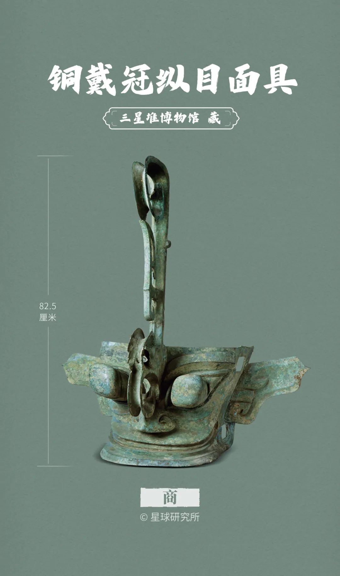 (铜戴冠纵目面具,多认为是第一代蜀王蚕丛的形象,图片来源@三星堆博物馆)