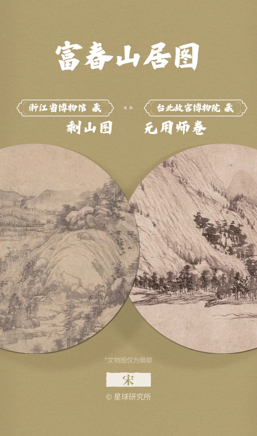 (《富春山居图》被毁为两段,前段为《剩山图》,现藏于浙江省博物馆;后段为《无用师卷》,现藏于“台北故宫博物院”,图片来源@昵图网)