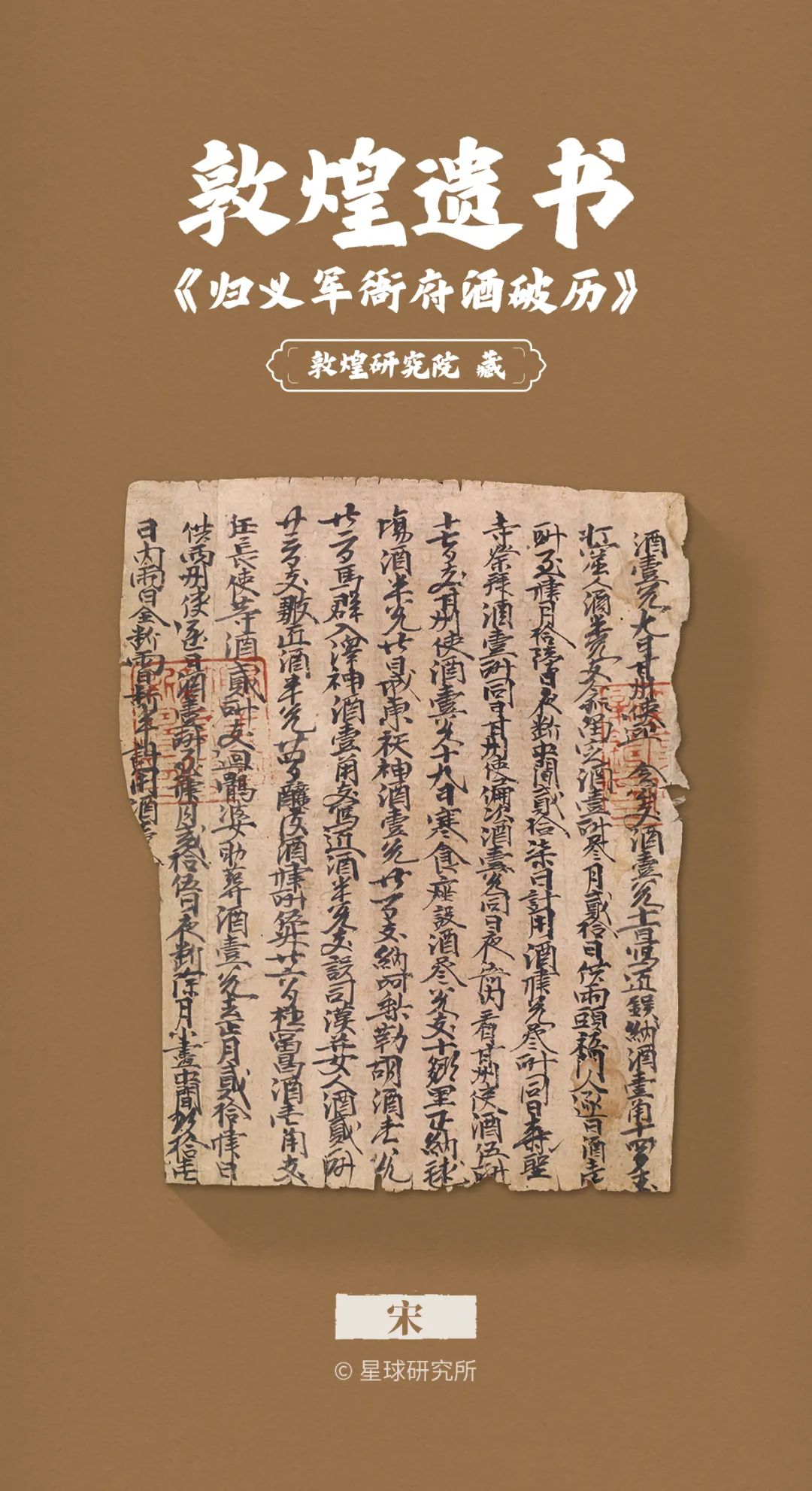 (敦煌遗书,指储藏在敦煌莫高窟洞窟中一批书籍的统称,年代跨越4—11世纪,数量多达6万余件,形式包含写本、印本、拓本;内容涉及佛教经典、经、史、子、集、文书档案等文献,被誉为“中国中古时代的百科全书”,部分流失海外,下图为敦煌遗书中的《归义军衙府酒破历》,摄影师@孙志军)