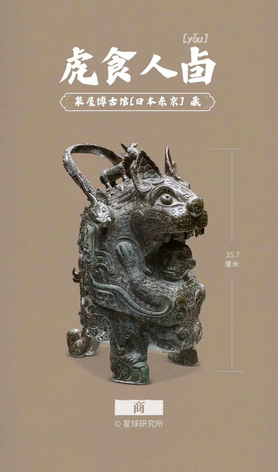 (虎食人卣,商代,目前仅发现两件,都流失海外,中国境内没有收藏,下图为日本泉屋博古馆藏的一件,摄影师@动脉影)