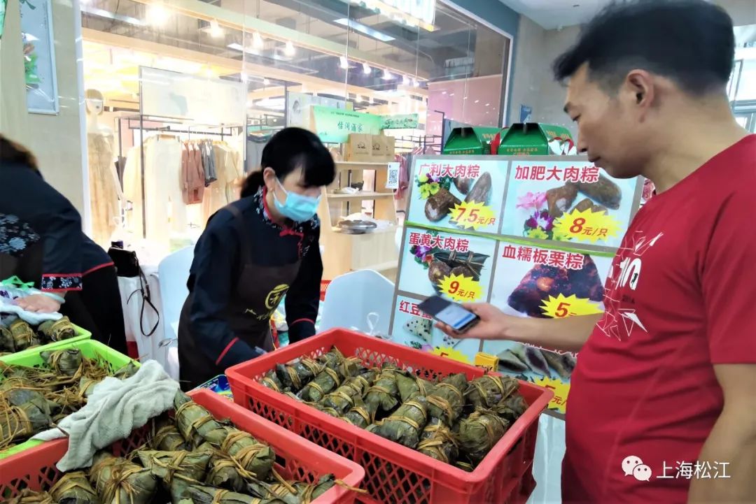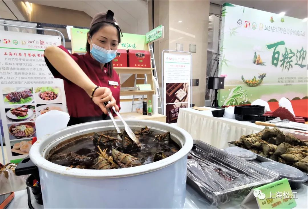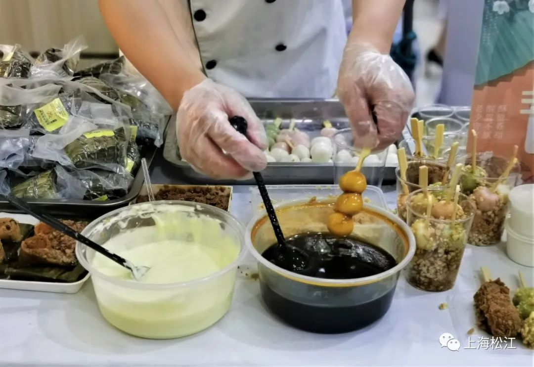 本次美食展销恰逢临近端午节,竹筷子松江味、鹿鸣餐饮、枫泾烧卖、广利粽子店、张小妹粽子店、方松餐饮等茸城市民们耳熟能详的餐饮企业,带来了各自招牌粽子,吸引了市民们现场品尝购买。