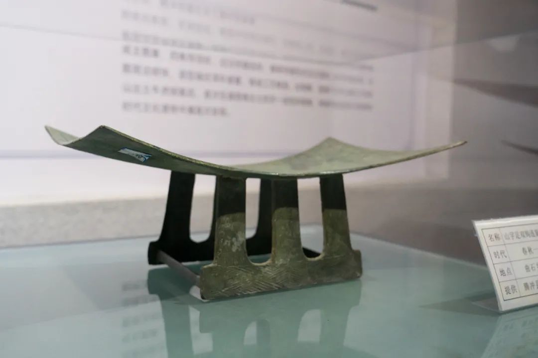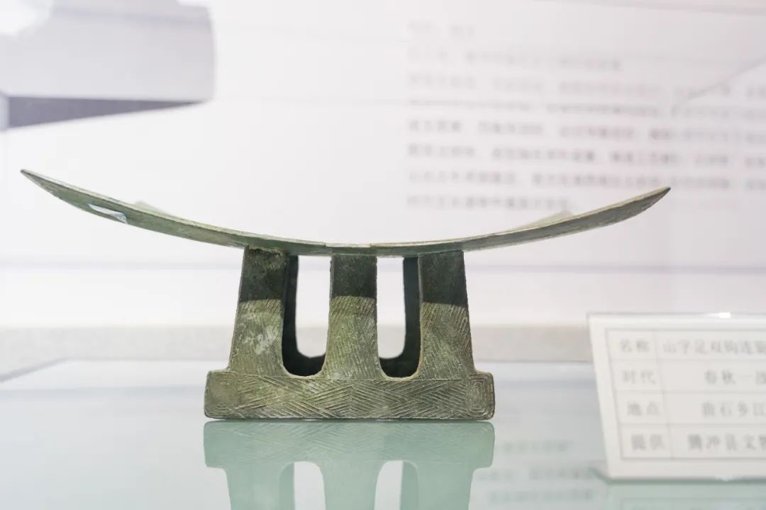 铜案由案面、支组成,案面中间窄且微凹,四角微上翘,呈弧形。案面下前后两侧连接对称山字形支架,支架间有两横档固定。案面纹饰由12组对称螺旋纹和云雷纹组成主图案,四角饰羽纹,边沿饰齿纹脚架饰菱形纹及云雷纹,纹饰布局对称,构图简洁明快,造型端庄浑朴凝重,铸造工艺精湛。此铜案,是继1972年云南江川李家山出土牛虎铜案后,首次在滇西南出土的另一造型的铜案,其独特的造型在云南青铜时代文化遗物中属首次发现。