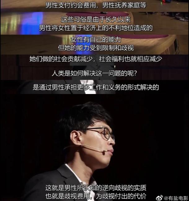 男性之所以感受到在社会中因为性别而遭受了种种不公平的待遇,其实是社会为了保护被歧视的女性,而自发产生的歧视代价。