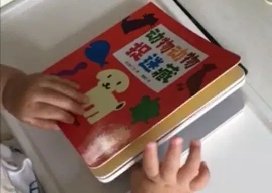 于是,在儿子一岁的时候,我买了一些硬纸板书,比如《动物动物捉迷藏》《奇妙洞洞书系列》……也许他天生爱书,毕竟我们抓周抓的是毛笔呢,从一开始就对“看”书和听书产生了浓厚的兴趣。