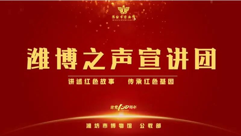 习近平总书记曾在讲话中说道:“不忘历史才能开辟未来,善于继承才能善于创新。只有坚持从历史走向未来,从延续民族文化血脉中开拓前进,我们才能做好今天的事业。”今年是中国共产党成立100周年,是“两个一百年”奋斗目标历史交汇的关键节点。为进一步弘扬红色革命文化,发挥好博物馆红色教育在爱国主义教育方面的重要作用。潍坊市博物馆“潍博之声”宣讲团蓄势待发,于5月18日(第45个国际博物馆日)开启建党百年红色宣讲第一站!