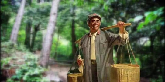 中午时分,队伍赶到黄洋界大槲树下休息。黄洋界海拔1300多米,地势险要雄伟,一边是高山峻岭,一边是万丈悬崖。这里云海翻涌时如一望无际的汪洋大海,故黄洋界又称“汪洋界”。休息时战士们议论开来了,七嘴八舌地说,劝也劝不住,讲也讲不过,怎么办?最后大家叫一个机灵的小战士把朱军长的扁担“偷”来藏起来了。战士们认为这样朱军长可以休息了。哪知道朱军长砍来一根大毛竹,用柴刀做了一根又大又扎实的扁担,叫军需处长范树德在扁担上写上“朱德记”三个大字,从此,他的扁担再也没人“偷”了。战士们看到朱军长大步流星走在山路上,满脸是汗,军装湿透了,扁担压得弯弯,感动不已。这时,山道上响起一阵阵歌声:
