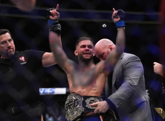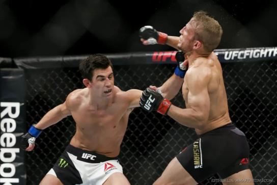 但两年后,出走的雏量级冠军TJ·迪拉肖,在第三场卫冕战输给“猛兽”多米尼克·克鲁兹,丟掉了这条金腰带。尽管菲波第一时间挑战了刚拿到冠军的克鲁兹,但5个回合下来,菲波没占到一点便宜就铩羽而归。