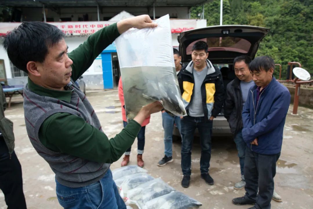▲为云阳县贫困养殖户赠送名优鱼苗种