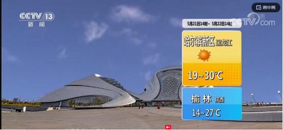 据市气象台相关负责人介绍,今后观众可在午间12时27分CCTV-1和CCTV-13并机播出的新闻节目后的“天气预报”中看到哈尔滨新区天气预报及宜居宜游的城市环境,这对进一步提升城市知名度,助力哈尔滨高质量高速度发展具有积极意义。