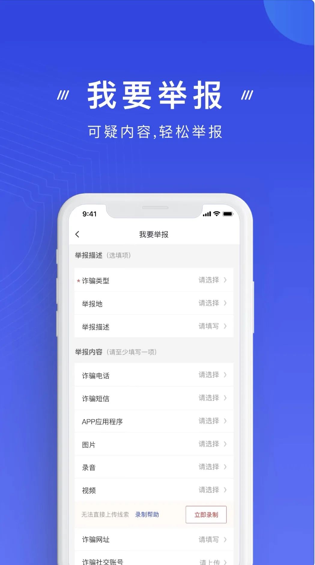 用户使用手机过程中,如发现可疑的手机号、短信,赌博、钓鱼网站,诈骗APP等信息,可以在“我要举报”模块进行举报。