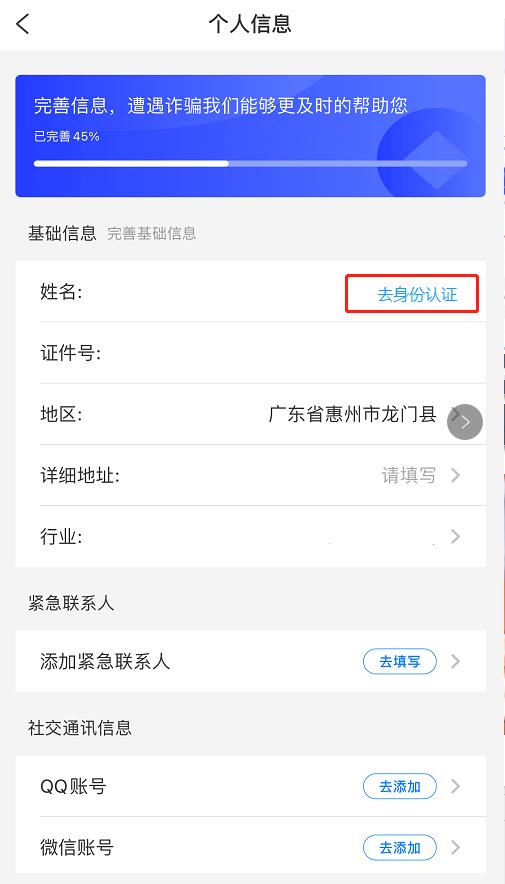 点击“我的-查看个人信息-身份认证”进行实名认证