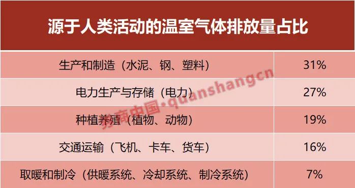 相比之下,钢和水泥生产过程中的温室气体排放量在全球总排放领中的比例达到10%左右。