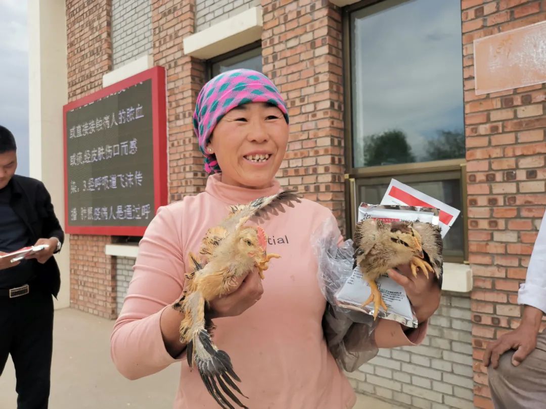 “今天50个鸡苗也领了,疫苗也打了,我们挺高兴的,然后都给送在家里。”