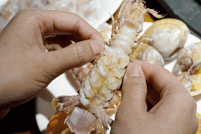 皮皮虾本身又分为两大类,穿刺型虾蛄和粉碎型虾蛄,我们平日里在海鲜市场里能够见到的大多数都是穿刺型虾蛄,穿刺型虾蛄是皮皮虾当中的温和派,当然,这个温和也是身不由己,穿刺型虾蛄的第二颚足远没有粉碎性虾蛄发达,它们的第二颚足就像一枚荆棘,有韧性、锋利,但力量性欠缺,因此它们不得不以一些身体柔软的猎物为食。