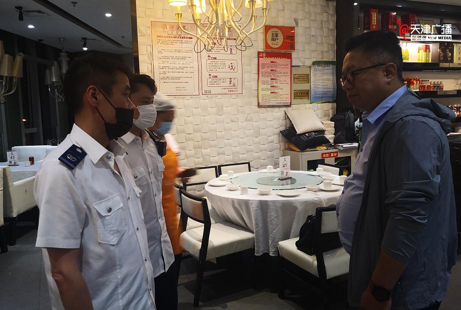 ▲昨晚,天津广播(ID:audiotj)记者跟随市场监管部门在北李妈妈菜河西区国贸购物中心店进行执法检查。