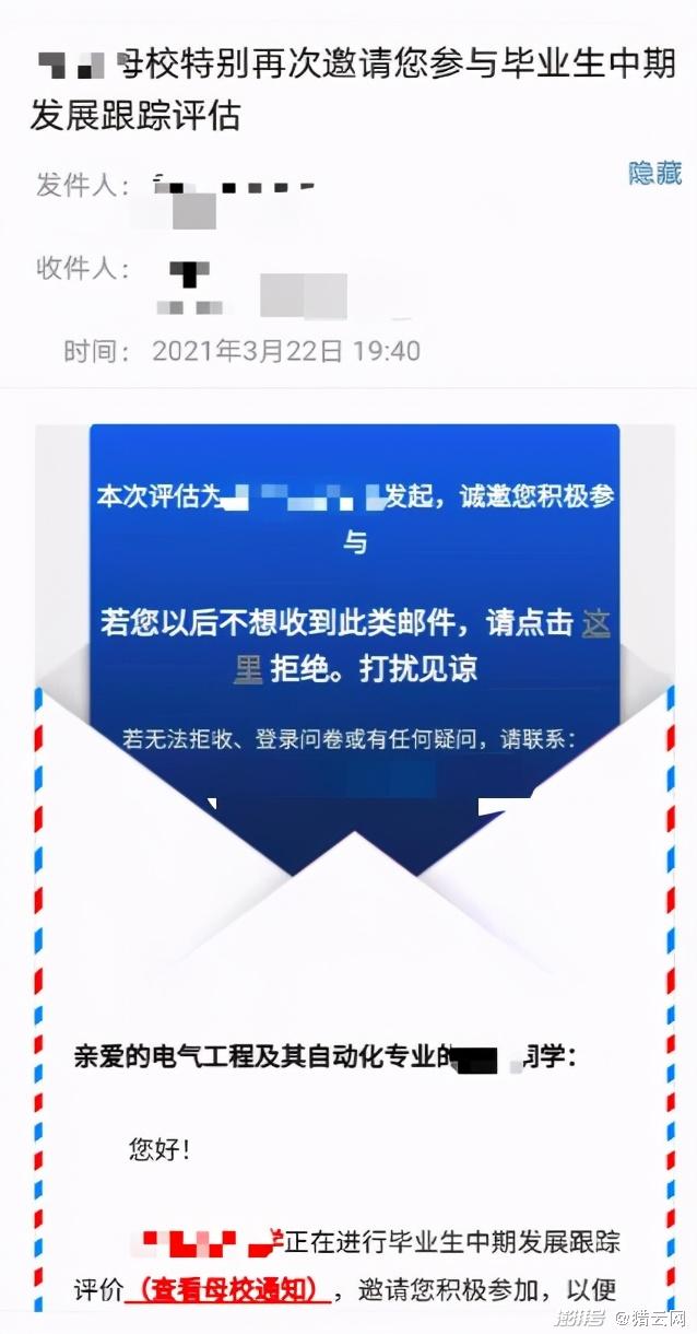 第三方数据公司以母校名义发来的毕业生调查表