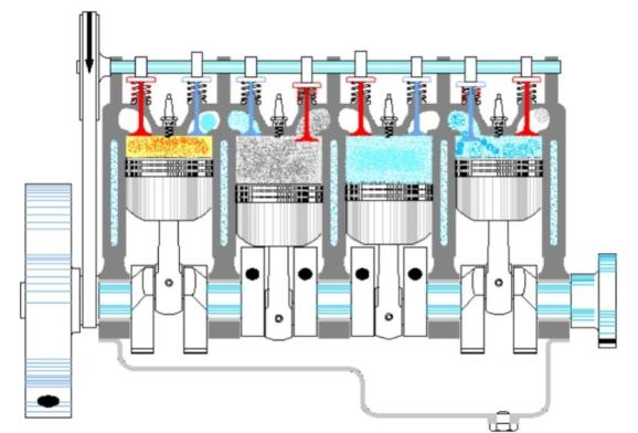 由于汽油粘性小、蒸发快,因此可以采用喷射系统将汽油喷入缸内,经过压缩达到一定温度和压力后,再通过火花塞点燃、使气体膨胀做功。