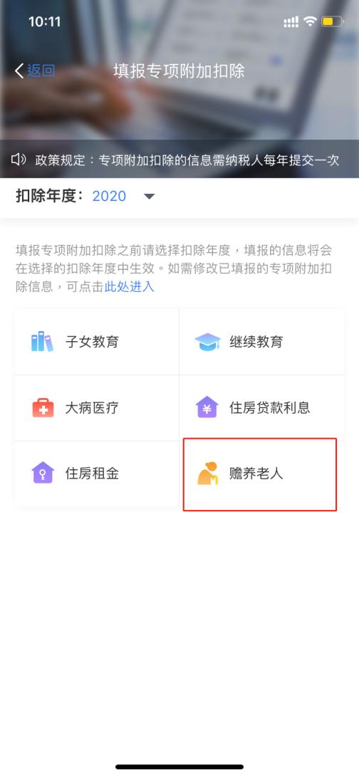首先,下载个人所得税app,点击首页的专项附加扣除填报,再点击赡养老人一栏。