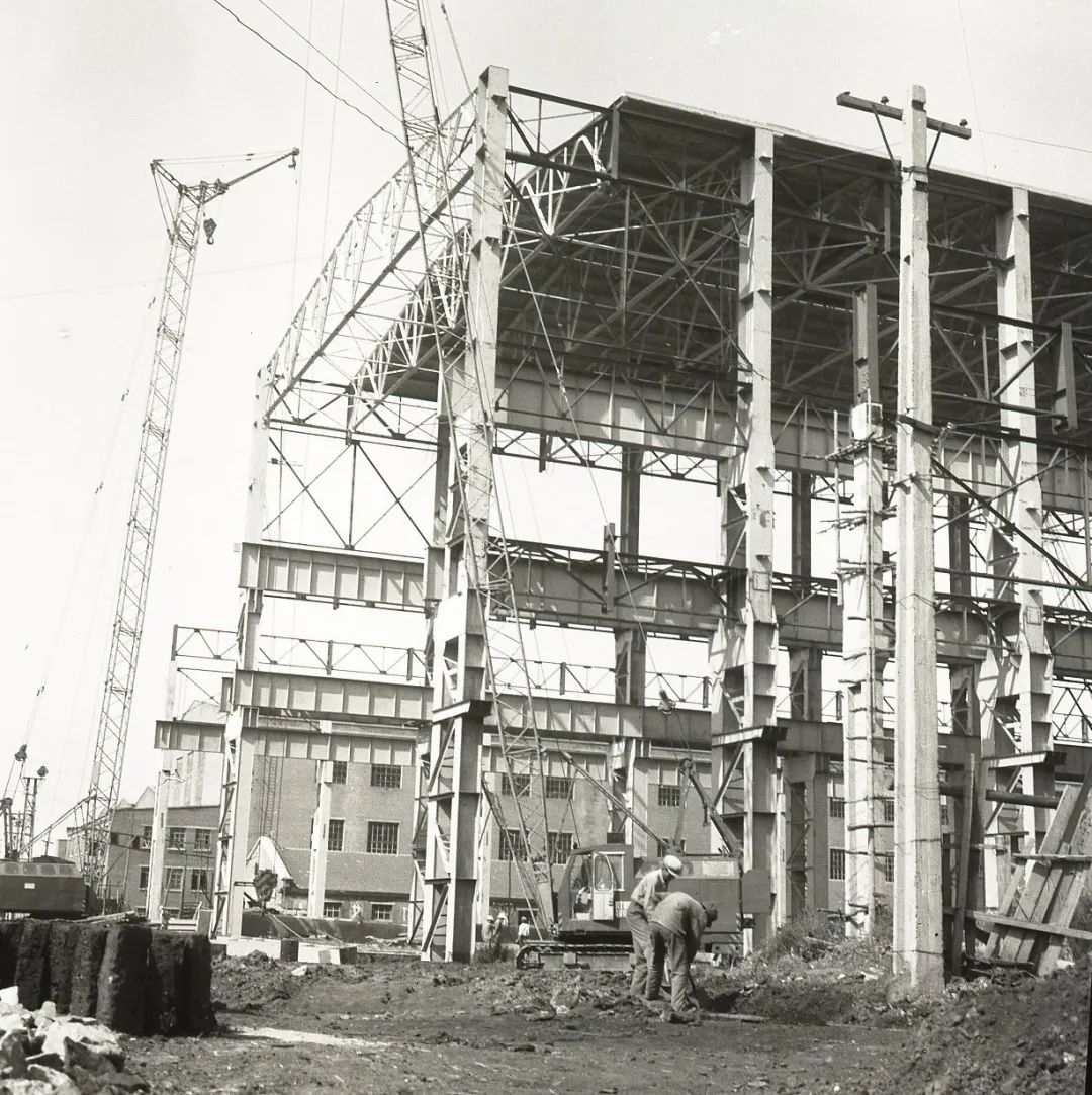 在为建厂70岁“生日”献礼的《我们的哈电电机》一书中记录,昔日的香坊赛马场背靠滨绥铁路线,虽然环境条件不是很好,但场地还算平整。哈尔滨电机厂的技术工人一边勘测设计,一边筹备建厂施工。1951年6月6日,哈尔滨电机厂第一期工程破土动工,原松江省人民政府主席冯仲云为施工挖了第一锹土。打基础、竖框架,1952年3月第一批电机生产职工从顾乡屯迁到新厂址,同年秋天新厂开始安装机械设备。加上抗美援朝战场捷报频传,一股巨大的精神力量也在鼓舞着职工迎难而上。