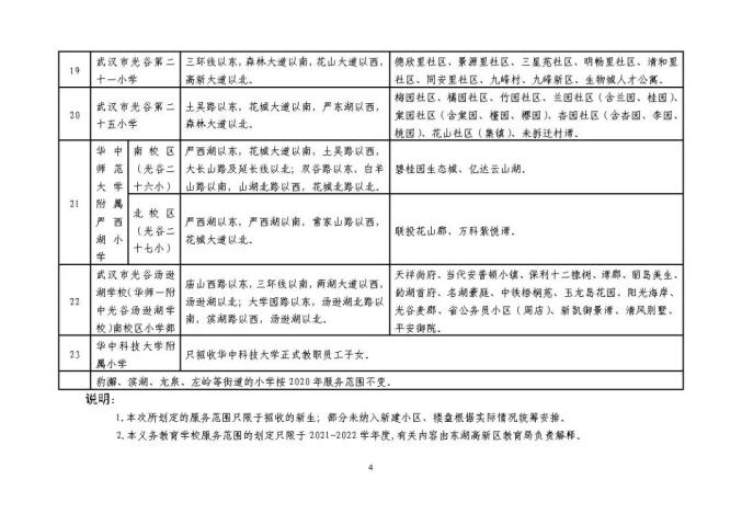 大花岭小学(咨询电话:81946667)京广线以东、湖景北路以南、星光大道以北的大桥区域,不含汤逊湖壹号小区、菩提苑小区、福志友缘小区、金悦府小区、联投龙湾一、二、三期小区。