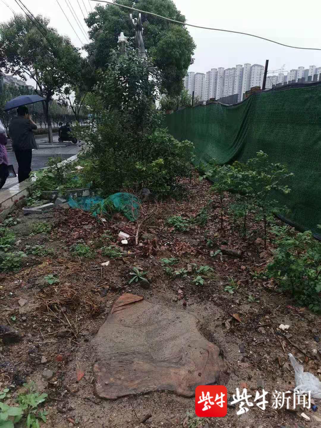 “以前这里的法桐长得好好的,怎么没了?”4月初,一位市民发现位于光华路的在建楼盘“钟山峰景”有人砍树,十几棵高大挺拔的法桐不翼而飞。“他们趁夜间偷偷砍树。为了掩盖证据,砍树的人还用泥土掩埋树桩,或者开挖掘机干脆将树桩连根拔起,偷偷转移走了。”