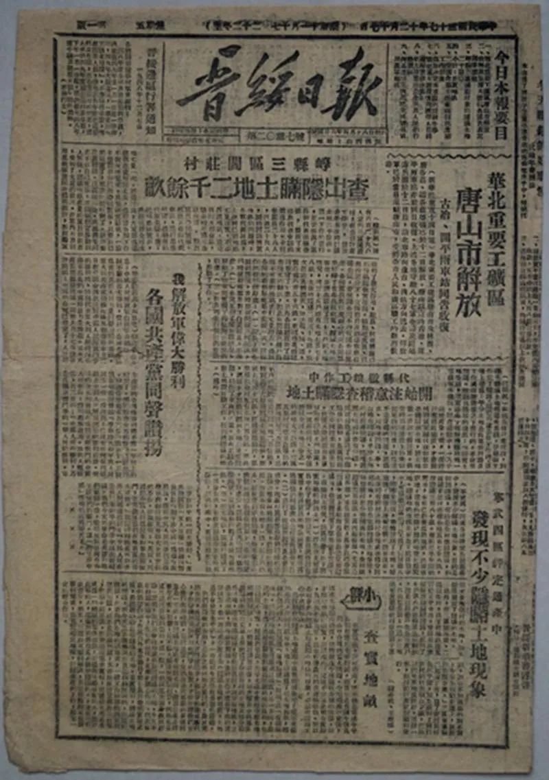 在位于吕梁市兴县的晋绥边区革命纪念馆,有这样一张报纸——《晋绥日报》,每每吸引到此参观的观众驻足。《晋绥日报》是解放战争时期中共晋绥分局的机关报,内容主要是社论、国际国内新闻、地方消息,承载着宣传中国共产党的政策,指导地方工作的作用。