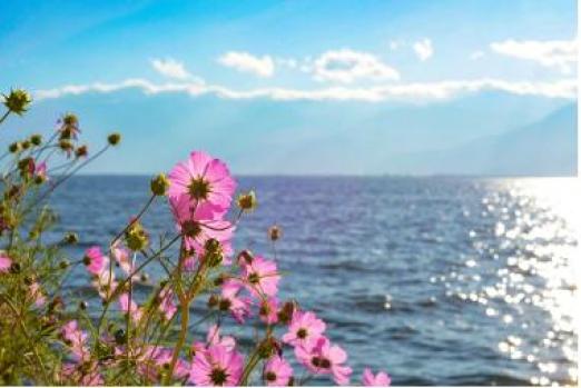 万顷稻海靓眸间,原生态赏奇观。格桑花艳胜陶园,泉水潺潺。