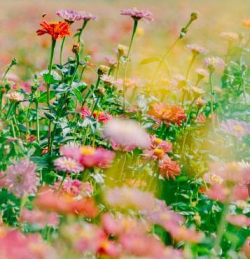 姹紫嫣红香漫天。轻霞笼雾岚。