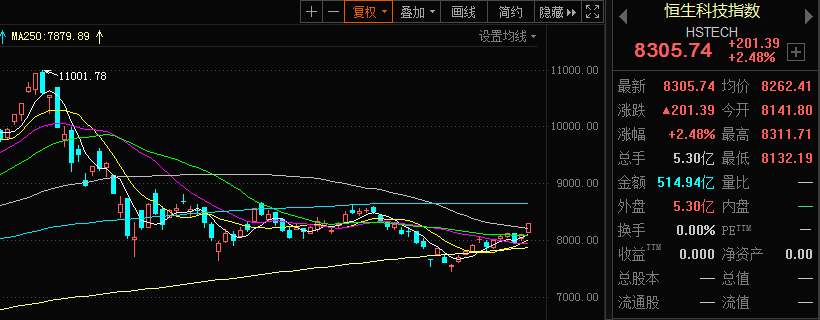 数据显示,截至6月1日收盘,恒生科技指数强势回暖,报8305.74点,上涨2.48%。自2月18日摸高11001.78点后,恒生科技指数一路震荡下行,于5月14日下探到低点7433.44点,随后走出一波回暖行情,也正是在这段行情中,各家基金公司看中该指数,并抢先布局了相关主题ETF。