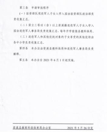 (二)荣立三等功(含)以上资溪籍退役军人子女入学入园由退役军人事务局负责收集汇总,每年开学前报县教科体局。