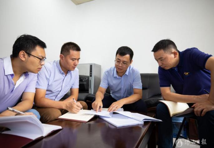 孙延驰(右二)和科室同志们分析研判维稳工作。/市委政法委供图