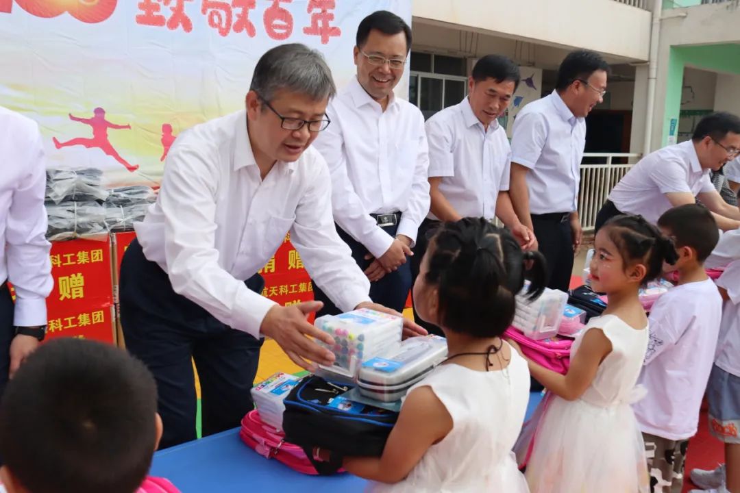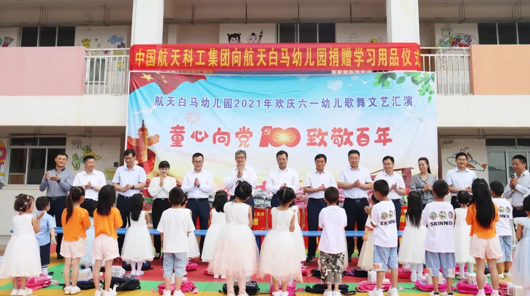 会谈结束后,袁洁一行前往富源县调研。袁洁一行首先来到位于富源县大河镇白马村的航天白马幼儿园,参观了航天“七彩梦想”教室、幼儿园食堂,为小朋友送上书包、水彩笔等学习用品,祝福小朋友们“六一”儿童节快乐。