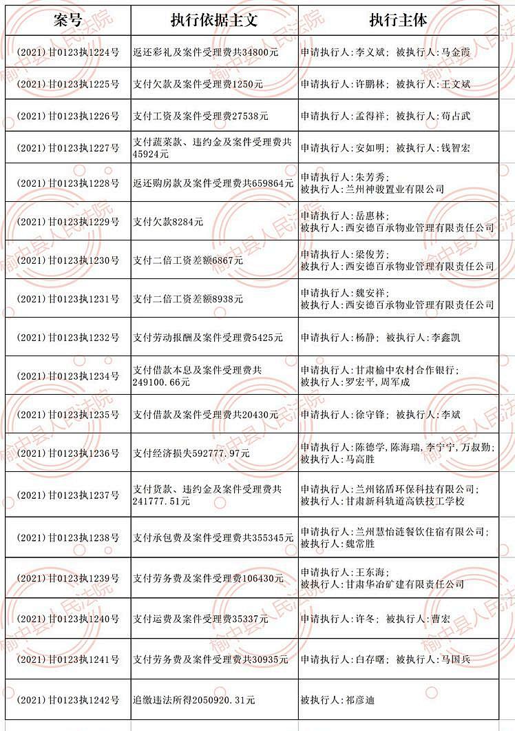 原标题:《榆中县人民法院5月27日收案被执行人名单》
