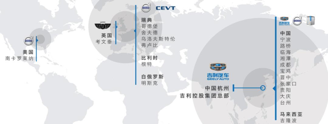 2013年,吉利和沃尔沃之间形成了更加紧密的战略资源的互补和共享,在瑞典哥德堡建立了中欧汽车技术服务公司(CEVT),是吉利汽车集团的全球五大工程研发中心之一。