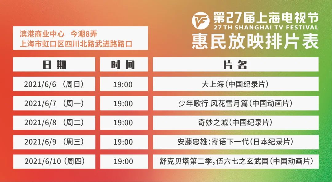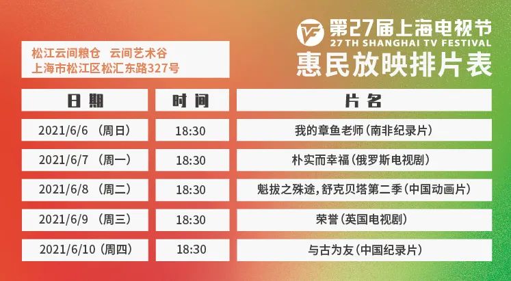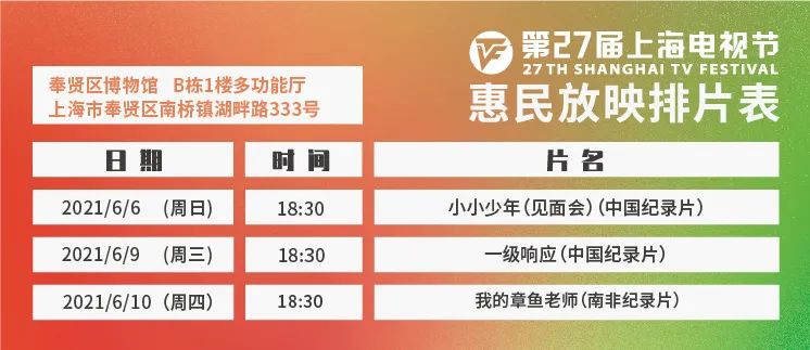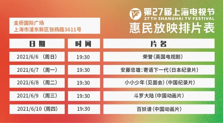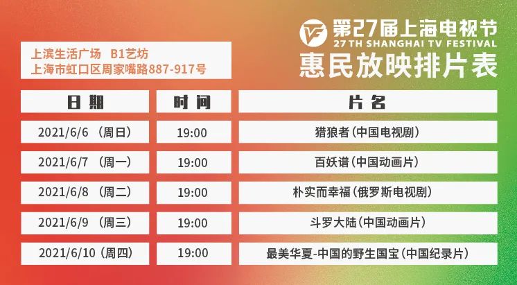 原标题:《惠民放映 | 上海电视节惠民放映6月3日起开放预约》