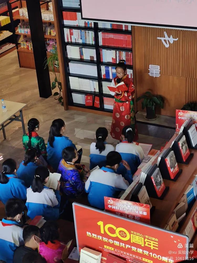 二是线下开展“红领巾心向党”主题队课,实验小学开展“红色阅读永远跟党走”朗读活动;