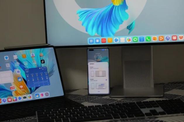 华为Mate 40 Pro贴上华为全新的MateView显示器的时候,这台只具备显示功能的MateView显示器将拥有Mate 40 Pro的算力,形成一台“桌面模式”的台式机。注意,键盘和鼠标依然配对的是屏幕,而非重新蓝牙配对手机。
