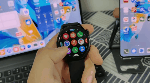 最后是同样采用HarmonyOS的华为Watch 3 Pro,同样,整个表盘app的应用图标设计采用了宫格式的重新排列,并与其他终端保证了相同风格的UI。实际戴起来,感觉华为Watch 3 Pro厚重了不少,但整体产品的精致感也拉高了一个档次。