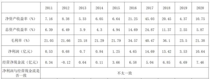过去10年,2011-2020,赣峰经营现金流合计37亿,净利润合计51亿,差了13亿。问题主要出在2017-2020年,差了21亿,卖的钱没收到账上。(潜在风险需进一步研究)