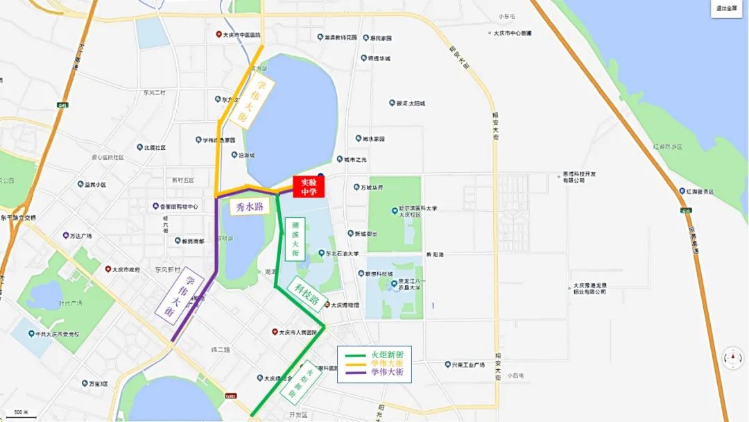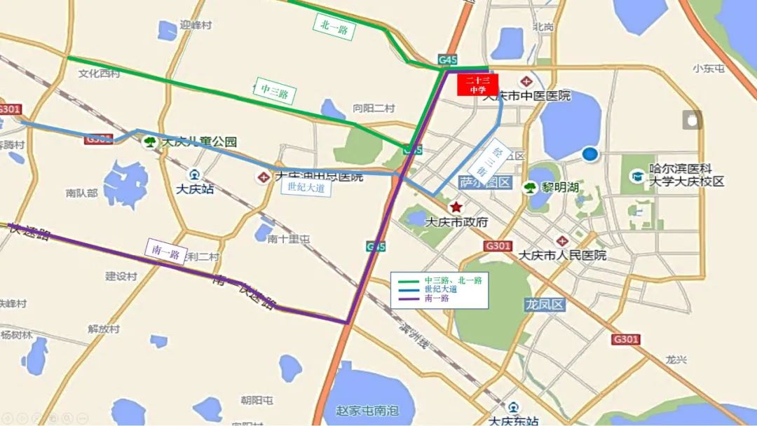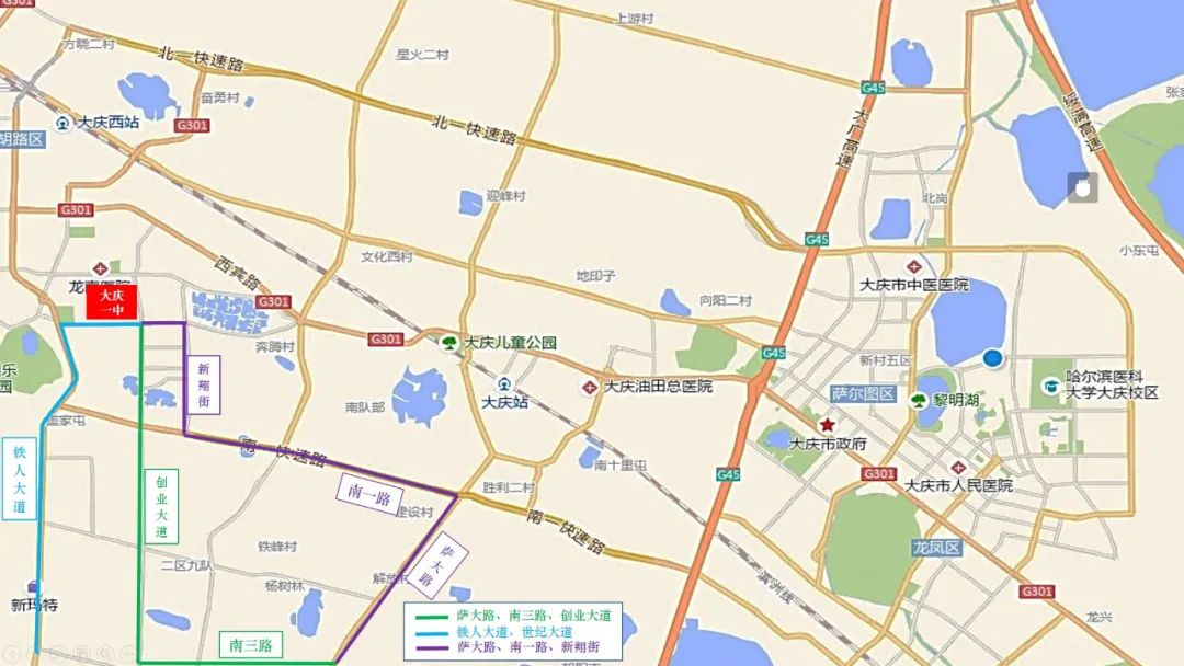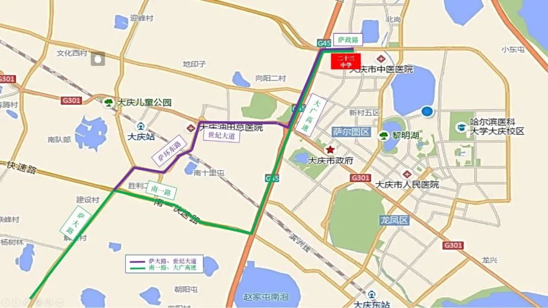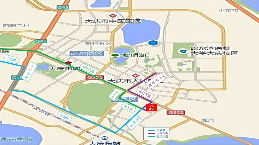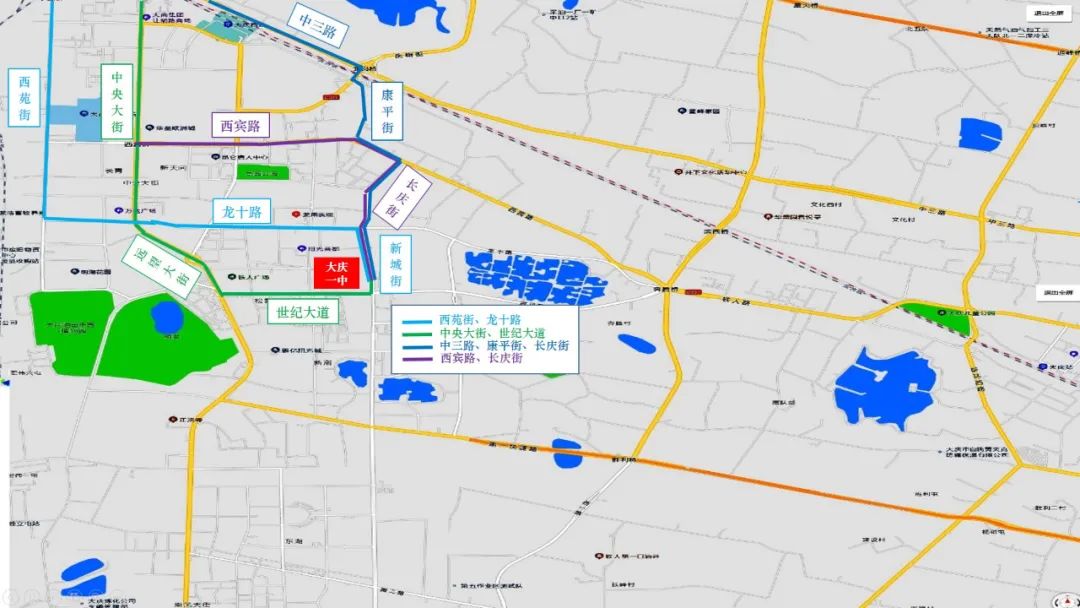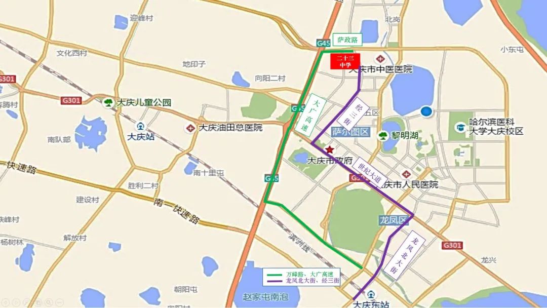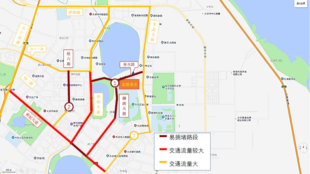 预计交通流量较大的考点主要是大庆实验中学、大庆第一中学,通行缓慢的考点主要是大庆第二十三中学、大庆四中、大庆铁人中学。