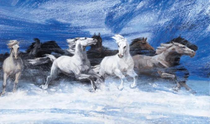 詹建俊先生的作品风格壮丽雄健、气势流畅,除《狼牙山五壮士》外,代表作还有《回望》《高原的歌》《潮》《雪域高原》《黄河大合唱》《飘雪》《天地行》等。