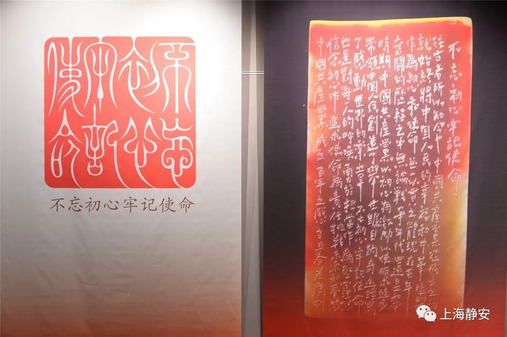 上图为雅体刺绣作品《不忘初心》,区新闻办供图由江苏省工艺美术大师梁雪芳亲手完成的雅体刺绣作品《不忘初心》与《中国共产党万岁》,优雅大气又不失娟秀,为刺绣这门古老艺术注入了红色的基因。